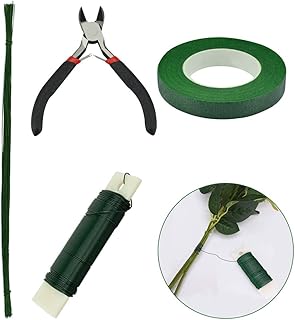 YEYIT 6 Sortes Outils Floraux,Trousse à Outils Arrangement Floral Fleurs,Fleuriste Ruban Vert 22 Mètres Avec des Ciseaux Adhésif Pour Fleuriste pour Corsages Bouquets FArrangements et Artisanat