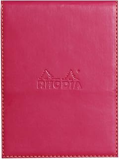 Rhodia 128212C - Étui Porte-Bloc+ Bloc-Notes Agrafé N°12 Framboise - 8,5x12 cm - Ligné - 80 Feuilles Détachables - Papier Clairefontaine Blanc 80 g/m² - Porte-Crayon - Simili Cuir