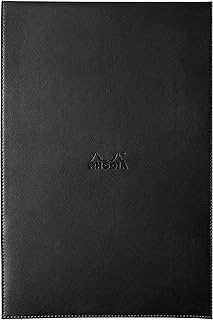 Rhodia 118189C - Étui Porte-Bloc+ Bloc-Notes Agrafé N°18 Noir - A4 - Petits Carreaux - 80 Feuilles Détachables - Papier Clairefontaine Blanc 80 g/m² - Porte-Crayon - Simili Cuir