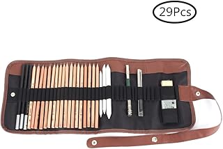 Lot de 29 crayons de dessin artistique professionnel, dessin crayon, dessin dessin de carbone, avec un sac de rouleau pour artistes professionnels et débutants.