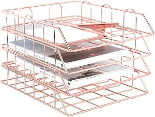 Baffect Corbeille à courrier A4 Baffect 4 étages,bac à lettres superposable Rangement de bureau Document Classeur Papier Lettre Organisateur Plateau de classement A4 en métal pour la maison(or rose)