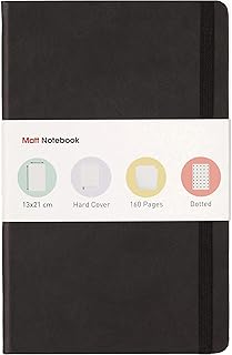 Matt Notebook Carnet de notes écriture classique, format A5, pages à dotted, 160 pages, couverture rigide, 12 couleurs différentes, poche intérieure, papier de qualité